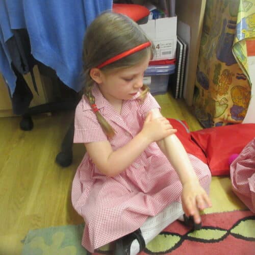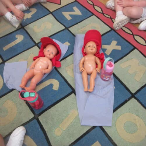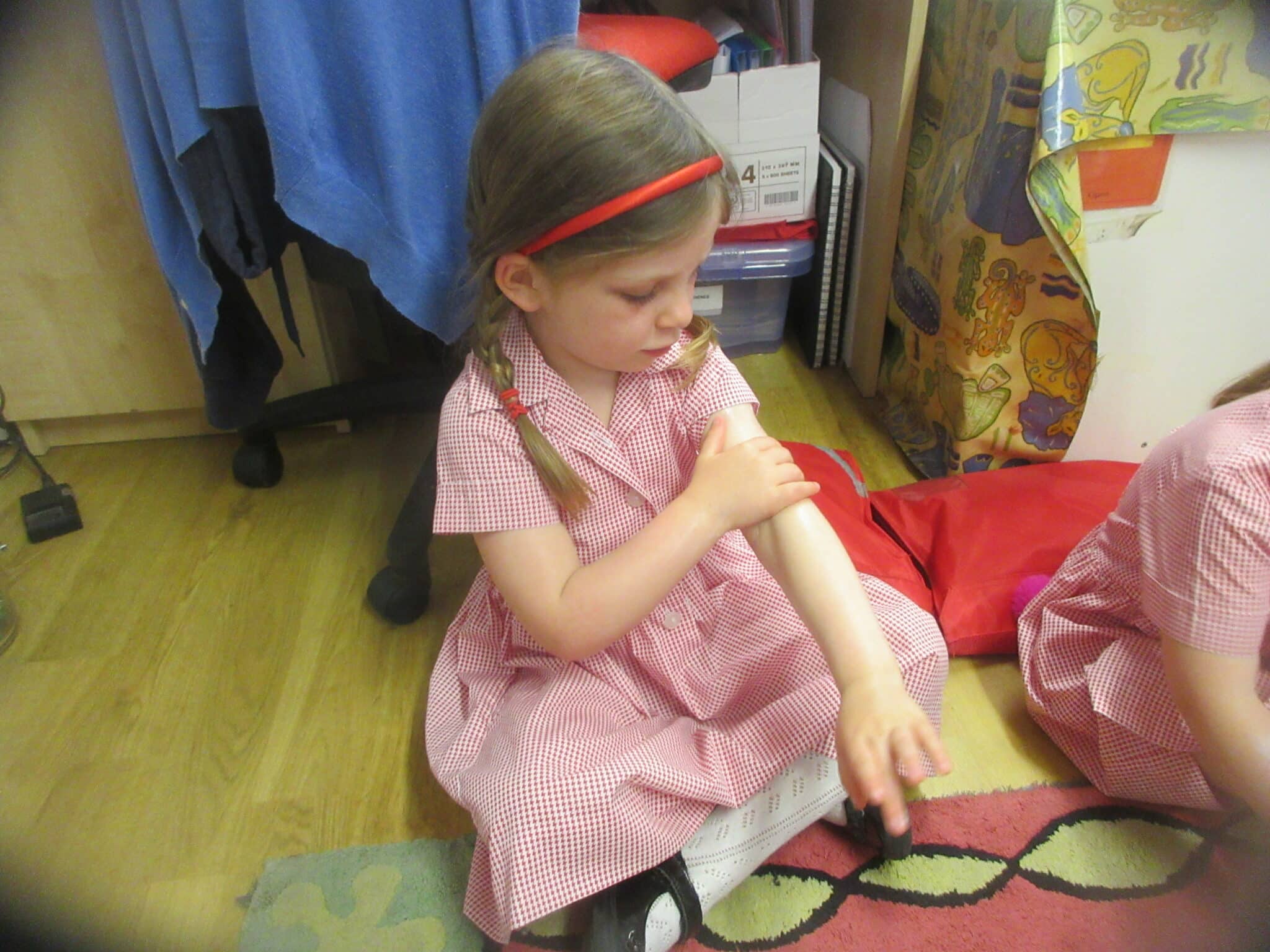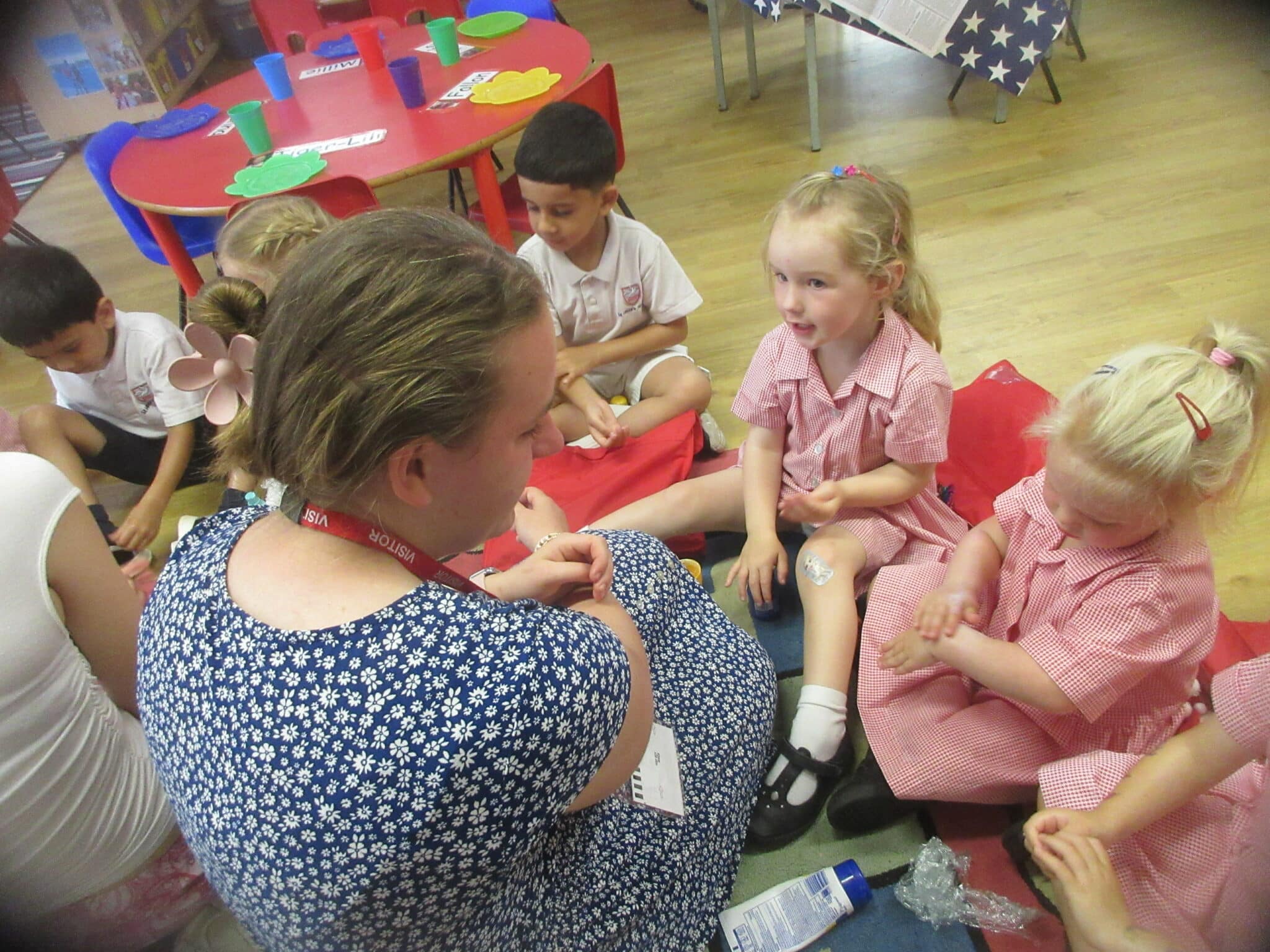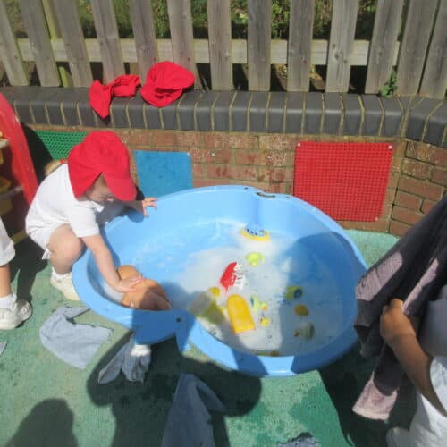 We started our morning learning to keep ourselves safe in the sun. We remembered that in the summer we need to remember to put sun cream on to protect our skin from the sun’s harmful UV rays. We learnt that there are different factors of sun cream for different colour skin types and for use in different temperatures. Some of us recognised factor 30 on Mrs Radgman’s sun cream and factor 50 on Jaime’s. We also found out that we could use sunblock to keep all the sun’s UV rays away from our skin. We knew that it was also important to wear sun glasses to protect our eyes and to never look directly at the sun. We also thought it was good to put a hat on to keep our heads cool and to spend time in the shade. We thought about drinking lots of water to hydrate ourselves and to wear appropriate clothing. We then prepared two dolls to go out to play in the sunshine. Isla and Millie carefully applied sun cream, popped on their hats and then took them for a play in the paddling pool outside. We then listening to ‘Slip, Slop, Slap’, a song all about putting on your sun cream.