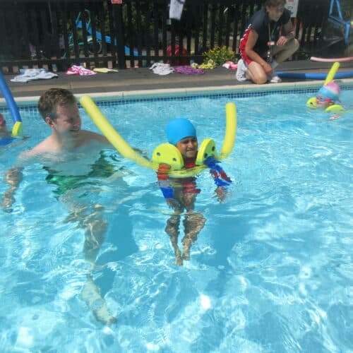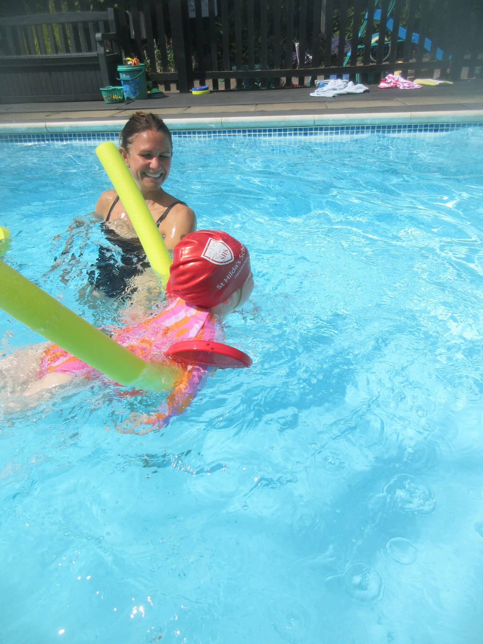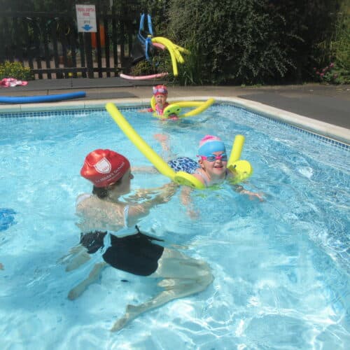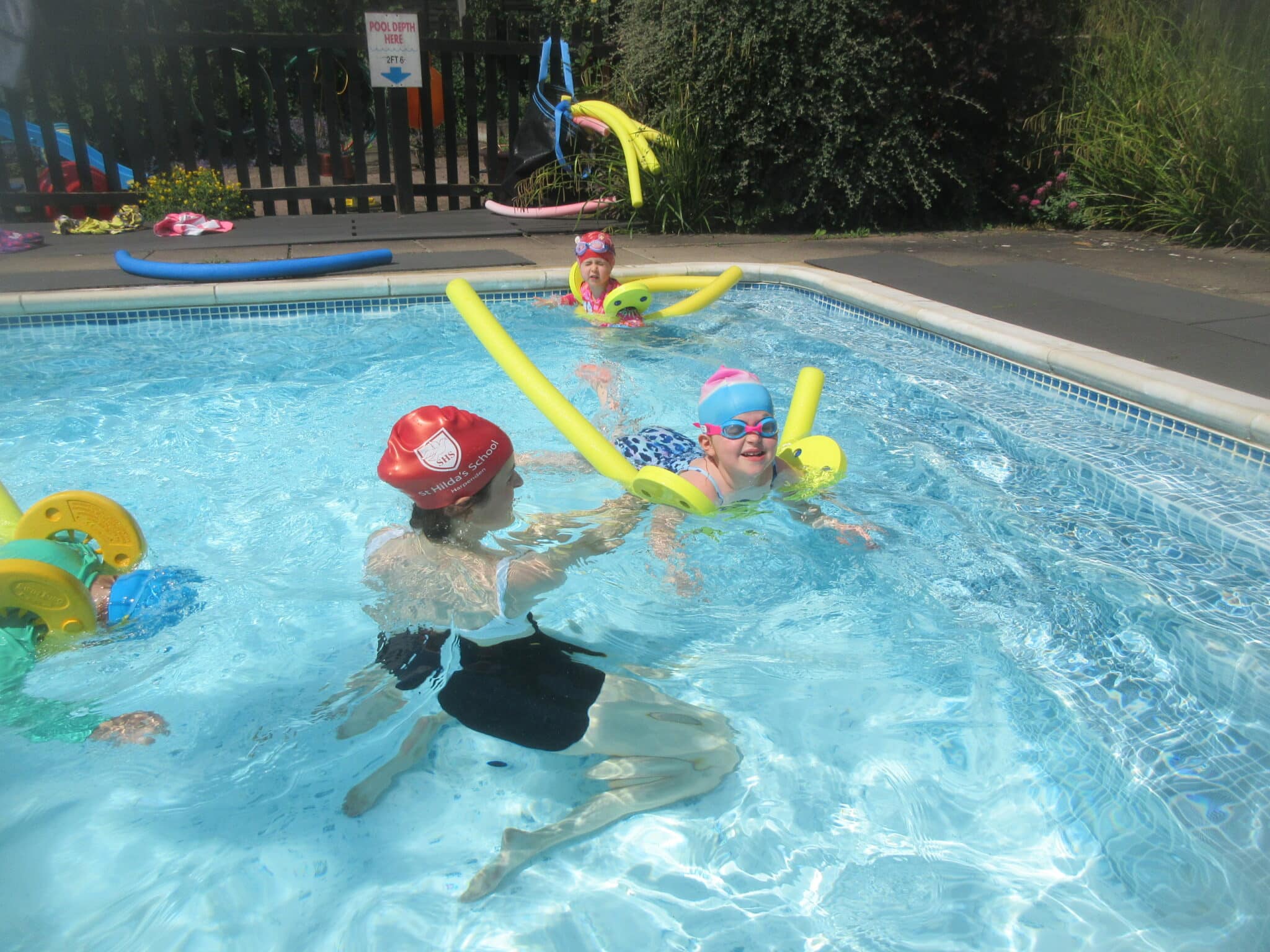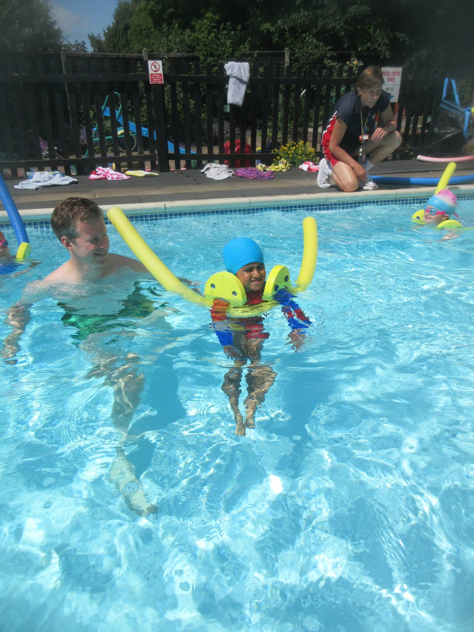 Later that morning some of us enjoyed another lesson in the school pool. We independently got ourselves undressed and put on our swimming costumes, all before the Mummies and Daddies came to help. We then enjoyed learning how to float on our fronts and backs, how to put our faces into the water and blow bubbles to flip over a pool toy, and then really enjoyed jumping in as far as we could to splash our parents and Mrs Radgman. What fun we had.