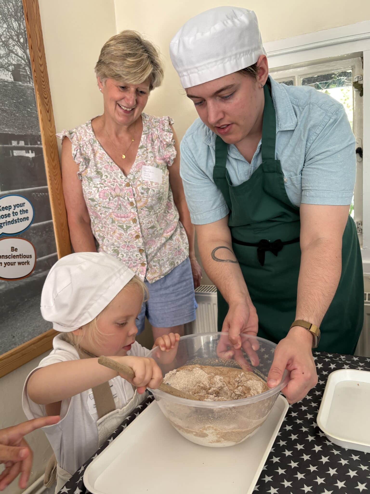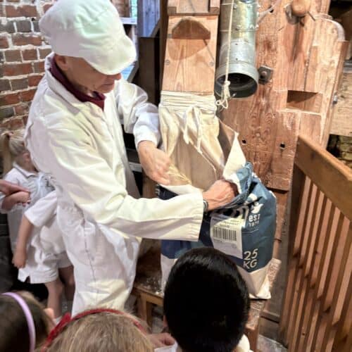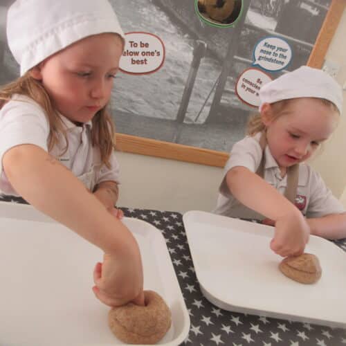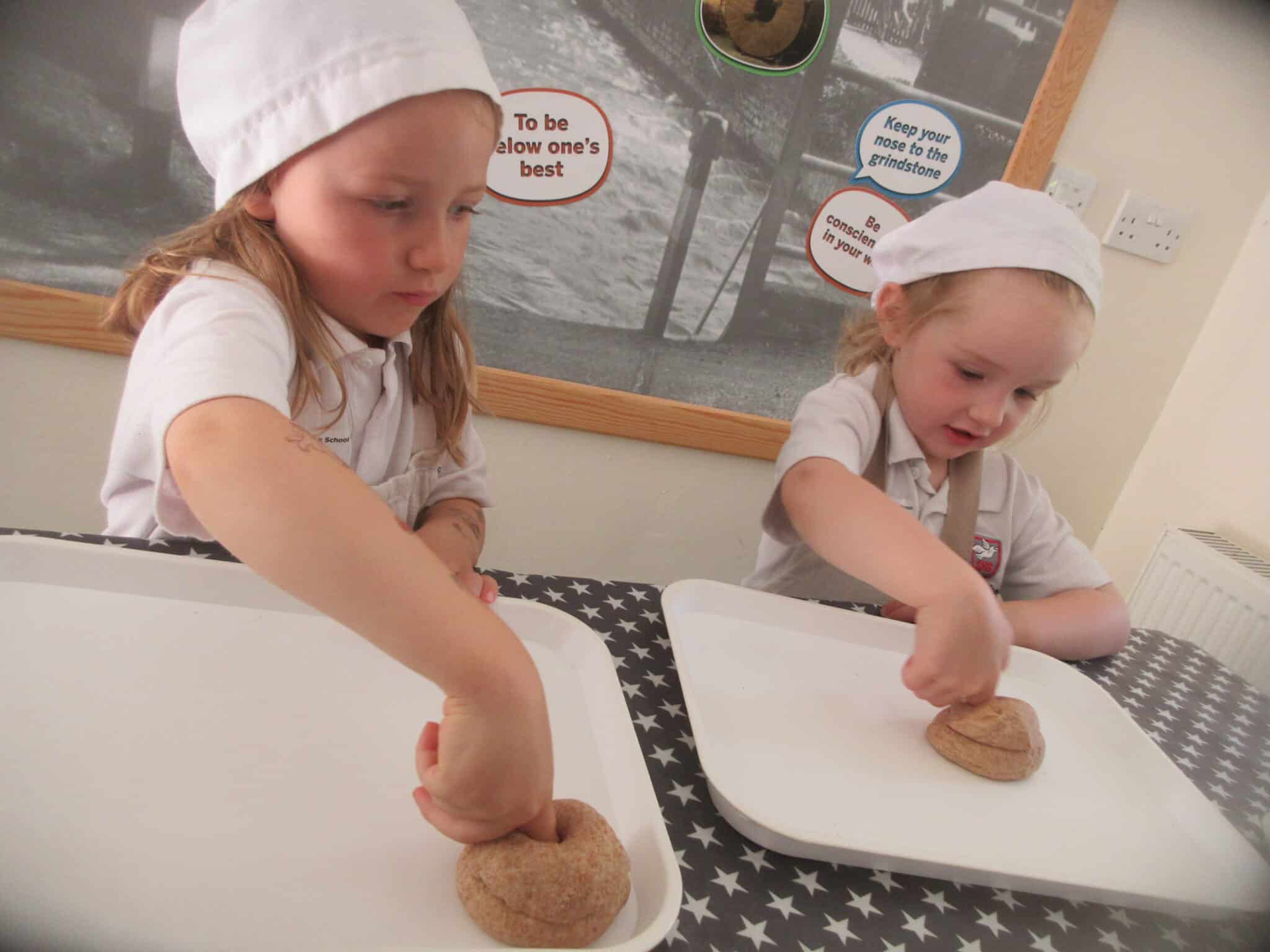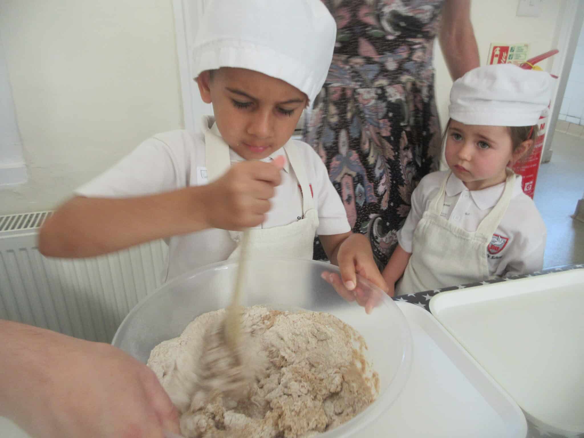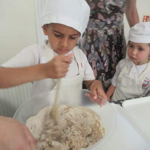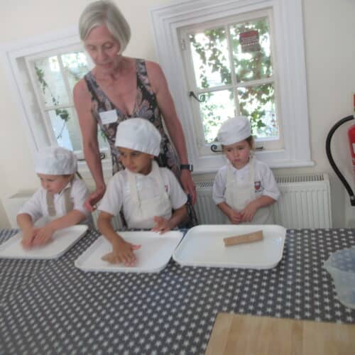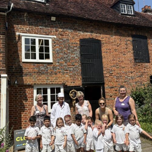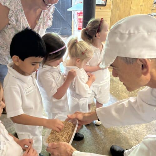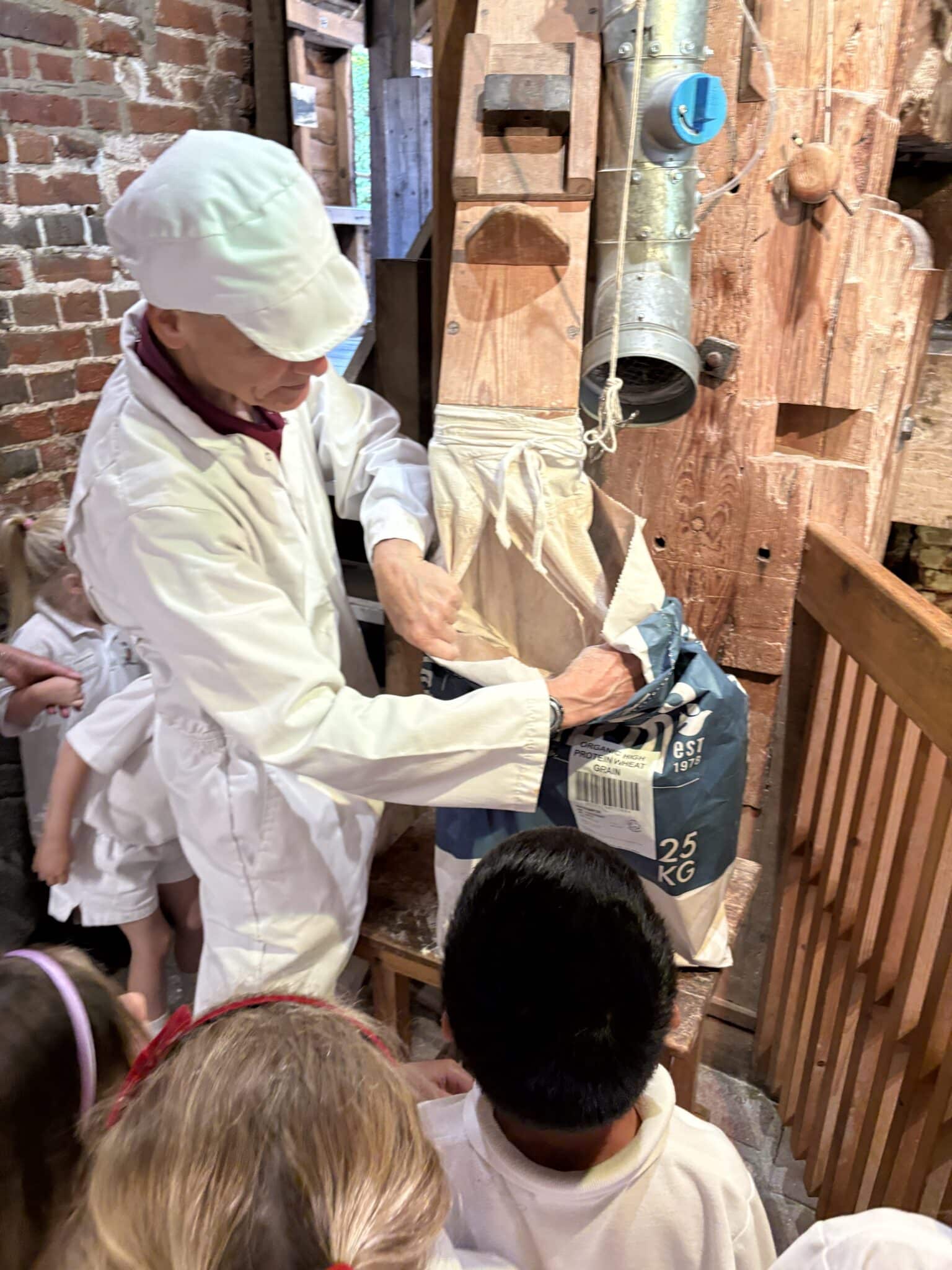 We were so excited on Thursday morning for our Nursery outing on a coach to Mill Green Museum at Hatfield. Once we were all ready we boarded the coach and off we set. On the way we passed by some of our houses, we saw cows and horses in the field and the river Lea. We sang songs on the way and talked all about the things that we were going to do at the Mill. When we arrived we had snack sitting in the shade of a tree and we met Melissa who had organised our day. First we went to listen to the story ‘Little Red Hen’ and we were shocked at how unkind Hen’s friends were not helping her to grow the wheat. After the story we split into two groups and whilst one group went to meet Simon the miller and learn all about how the grain from the wheat is turned into flour, the other group went to make bread rolls with the baker Freddie. In the bakery we mixed the ingredients to make the dough, and learnt that the dough had to prove. We then made the dough into two balls and made a snowman, then put our pointy finger through both balls to make a little loaf. In the mill we used a mini mill stone to grind the grain and we watched the miller open the gates to let the water flow through and turn the large millstones. We then saw the soft flour flowing down into the flour bags. Our busy day continued with planting cress seeds and a play with grain and cogs and dressing up in miller’s clothes. At the end of the morning we had a lovely picnic under a shady tree before the coach arrived and brought us back to school. Our teachers were super proud of the way we behaved, how polite we were and how engaged we were during the whole outing.